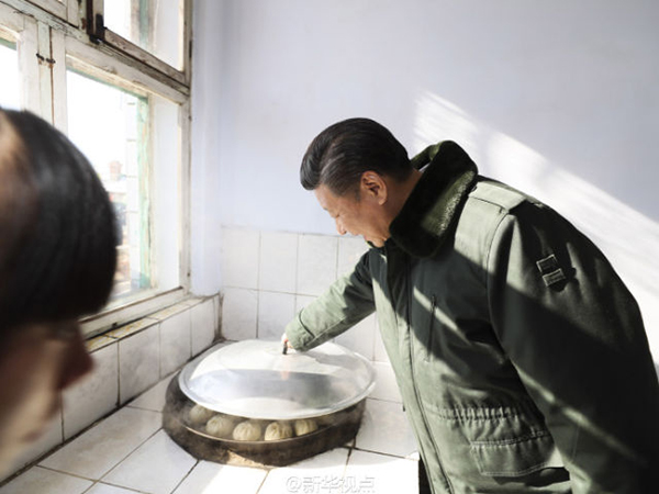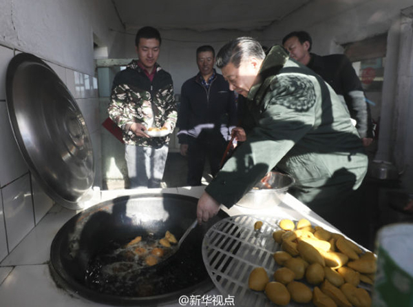 【扶贫足迹】脱贫攻坚的“四梁八柱”已经建起,以超常规之力真抓实干更是关键。2017年1月24日,习近平总书记在河北张家口市考察脱贫攻坚工作时,在张北县踏着皑皑白雪进入小二台镇德胜村,和困难群众炸年糕、聊家常。